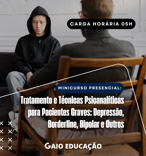 Este minicurso presencial tem como foco a aplicação prática da psicanálise no atendimento a pacientes com condições psicológicas graves e de alta complexidade, como depressão profunda, transtorno de personalidade borderline, transtorno bipolar e psicoses.